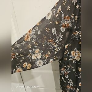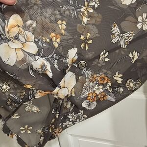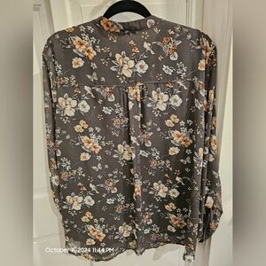 Papermoon Jonis Split Neck Blouse Greenish Taupe, Sheer Arms Size 2X