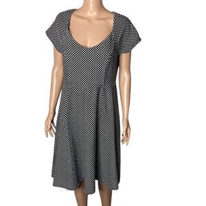 Torrid Dress Womens 1X Black White Polka Dot Swing Challis Shirred Front Skater