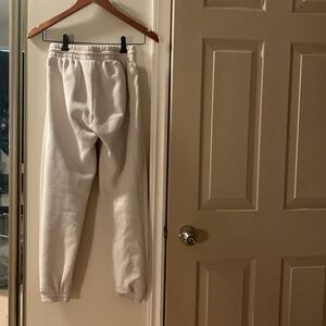 XS TNA (Aritzia brand) sweatpants with drawstring and pockets. Super cozy and great for fall/winter chilly days and nights! White/ivory colour. Great used condition with some minor exterior piling throughout. Interior piling as expected in used sweatpants - please see size tag photograph for example. No noticed stains or discolouration, rips or tears.