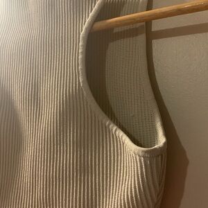 XXS Aritzia Babaton cropped muscle tank in contour ribbed fabric. Nude bone colour. Excellent condition hardly worn, one small interior pull. Stretchy but also thick and flattering!