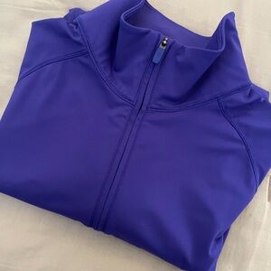 Almost new in great used condition - half zip -took many pics but does not capture the pop of color - its more purple color - back zip