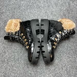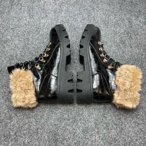 BAMBOO FORCE 10 Womens Lace Up Combat Boots Faux Fur Trim Size Size 8