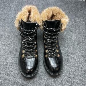 BAMBOO Womens Lace Up Combat Boots Faux Fur Trim Size Size 8