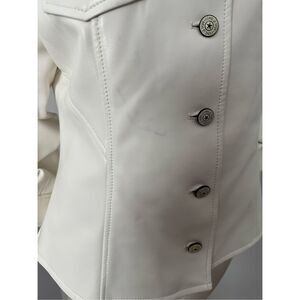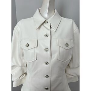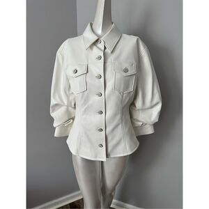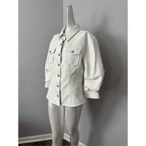 Cinq A Sept Button Front Tailored Fit Vegan Leather Canyon Jacket Ivory Sz 4 $49