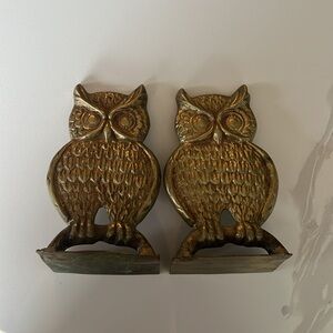Vintage Pair of Brass Owl Bookends