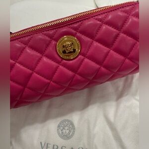 VERSACE Pink Quilted Shoulder Bag. Leather and gold shoulder strap. New without tags.