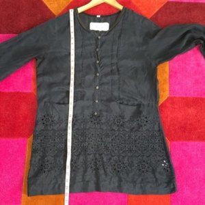 Vintage Johnny Was 100% Silk Black Button Tunic Top