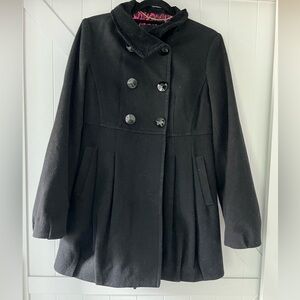 BETSEY JOHNSON Black Wool Pea Coat - Size 8