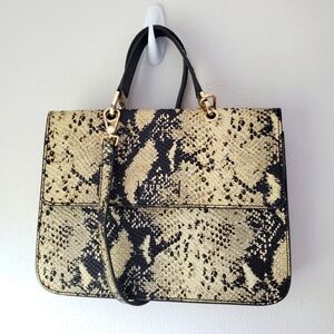Furla Top Handle Leather Evening Bag Crossbody Purse Snakeskin Print