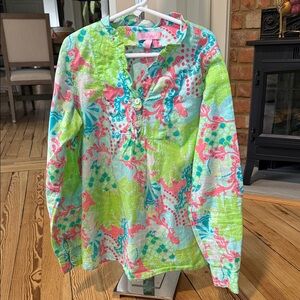 Just one blemish on this perfect condition dress!!! The little elastic button holder on the sleeve is off on white side but can easily be fixed!