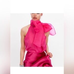 ZARA Satin Faux Silk Twill Red Pink Blue Paisley Scarf Print Button Up Shirt. Size medium. Excellent preowned condition. Bust 22.5”, length 25.5/28.5”✨Approx (S1)