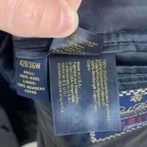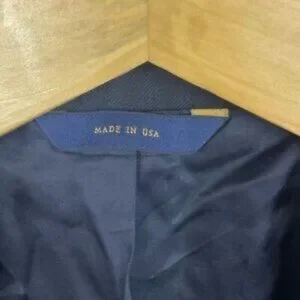 Brooks Brothers Makers and Merchants 1818 Madison Navy Blue Wool Blazer in Size 42R / 36W. 100% wool. Lined. Made in the USA. Retails for $648 USD. Very good pre-loved condition. Only flaw is a small nick on the back (not noticeable and doesn't go all the way through but see photos).