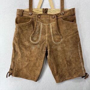 Lederhosen Shorts Men 36 Brown Suede Leather German Suspenders Oktoberfest
