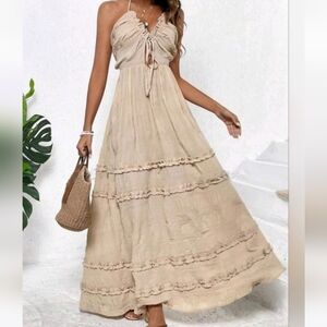 NWOT Boho Tie Back Ruffle Tiered Maxi Dress
