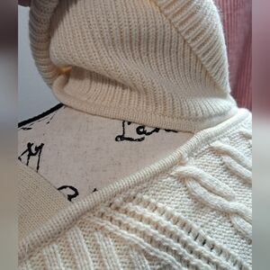 Absolutely beautiful, soft, thick and chunky knit turtleneck sweater with cold shoulder cutout with adjustable strap and buckle detail. So classy and the differsnt knit patterns are so pretty! Like new condition