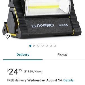 Excellent condition. New batteries. Only used one time at a trade show display for 3 hours. Bright light beam but ended up replacing with overhead lights. Originally bought a 2-pack for $24. See Amazon screen shot.