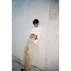 ZARA WIDE LEG MID RISE LOOSE FIT PANTS