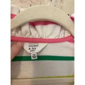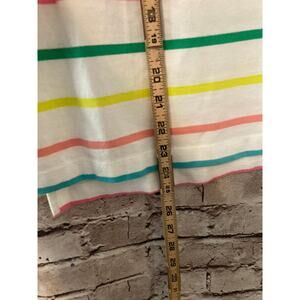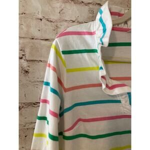 Crown & Ivy Shirt Women's Petite Medium Multicolor Rainbow Striped Ruffle V Neck