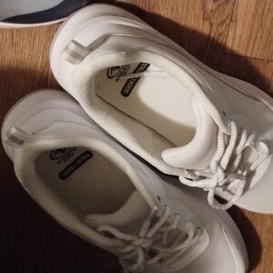 both pairs of shoes are brand new pretty much the white ones I didn't wear and then the blue ones I wore maybe a handful of times. they're just too narrow for my feet because my feet are pretty wide.