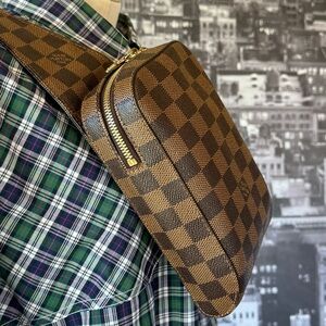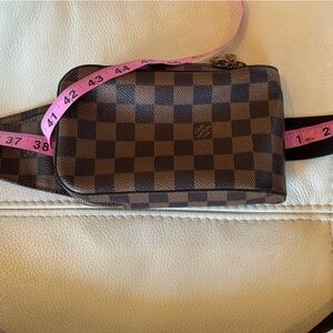 Gently used LV Geronimos Demier Cross Body Bag or Belt Bag… have included pics of measurements and of as much of the bag detail as possible… ONLY CALL OUT IS THE ZIPPER PULLS ARE A LITTLE DISCOLORED… Date Code Pic is Also Displayed… bag will be authenticated by POSHMARK… As Always 100% Authentic… Will always consider reasonable offers, so offer away!!!