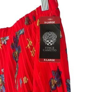 Vince Camuto red floral midi skirt XL fireball pleated NWT