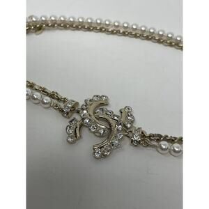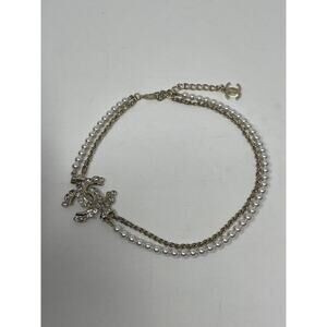 Elevate your fashion statement with this exquisite Chanel 23P Choker Pearly White Crystal CC Necklace. Crafted from high-quality materials, this necklace features a stunning combination of crystal and pearl stones. The necklace is designed in a classic choker style and is perfect for any occasion.