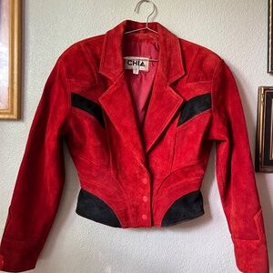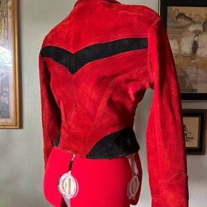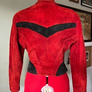 RARE & RESTORED 80s Chia Red and Black Cropped Thriller Suede Jacket