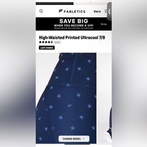Navy Fabletics Ultracool Liberty Star Leggings, in EUC. Size tag is missing but they measure 13” across the waist.
