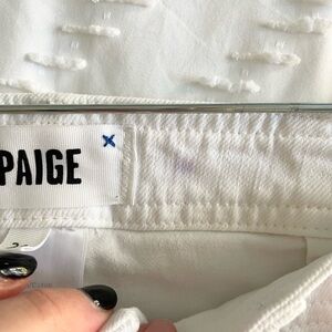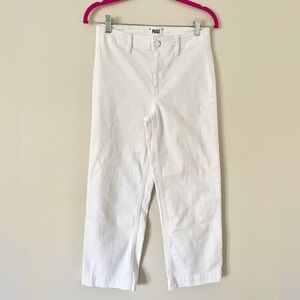 Size 26 great used condition Paige Nellie Cropped Jeans in Crisp White. Perfect cropped length. Minor purple spot on waistband on inside and slightly on outside by belt loop. Hardly noticeable as pictured.