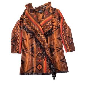 Does have a couple of extra buttons, comes from a smoke free home. Made from 62% rayon and 38% polyester. Measurements armpit to armpit 29”, length 29”, and armpit to hem 17.5”. Please message me with any questions, thanks!