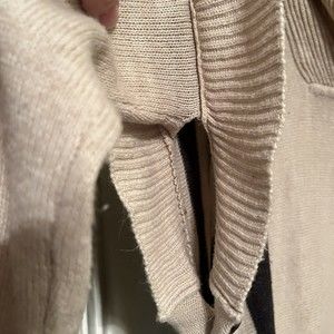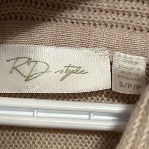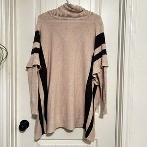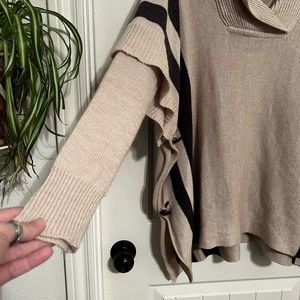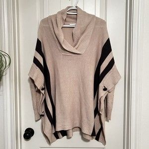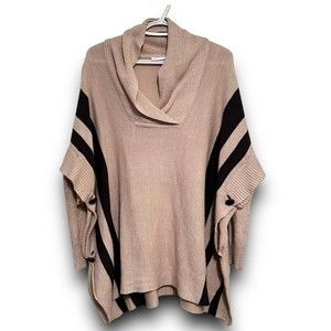 RD Style Tan Black Button Side Calandri Poncho Sweater Long Sleeve Cowl Neck Sm