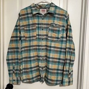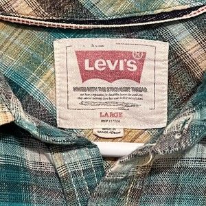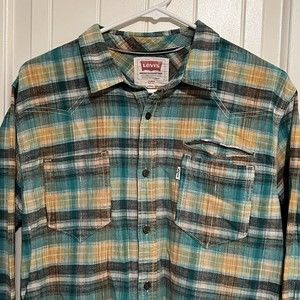 Levi’s Men’s Fantane Castlerock Plaid Shirt Size Large 100% Cotton Button Up