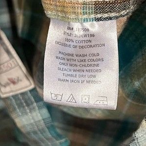 This Levi's button-up shirt is perfect for any rock-themed outfit. The plaid pattern in multicolor adds a touch of personality to the shirt, while the long sleeves make it suitable for any season. Made with 100% cotton, this shirt is comfortable to wear all day long. The size is large, and it's a regular fit, making it suitable for most occasions.