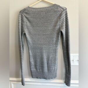 Express women’s shimmery gray long sleeve fitted v neck sweater Size M
