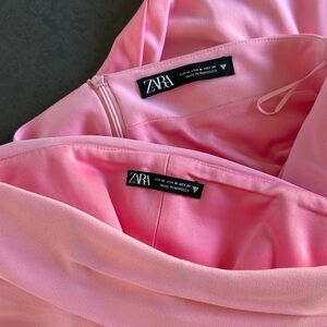 Zara 2pc Pink Bustier Crop Top & Draped Mini Skirt Set
