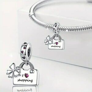 Celebrate your love for shopping with this sterling silver charm. Its elegant design and sparkling details make it a perfect addition to any jewelry collection.