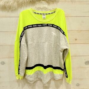 PINK victorias secret long sleeve lime green/ black/ gray pullover ❤️ size large. Gently used in good shape, some fading.
