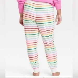 Tailored in a relaxed fit, these pajama pants are crafted from midweight thermal fabric with spandex for warm comfort and a bit of stretch, while a full elastic waistband. Designed with ribbed cuffs for a neat finish, they feature rainbow stripes on a cream background.