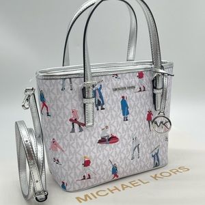 Michael Kors JST Xsmall Top Zip Tote Bag Bright White Multi
