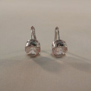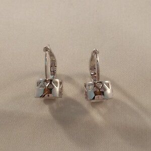 Beautiful women's chic design simple white round zircon bezel enclosed hoop party earrings 18K white gold filled w/ beautiful sparkling round clear white simulated diamond topaz zircon gemstones. Top quality, high polished shine, brand new, never been worn. Lead, nickel free. These gorgeous earrings sparkle.