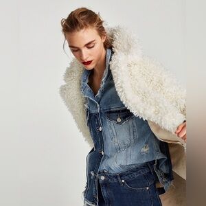 Zara white textured curly knit teddy coat.