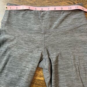 New Balance Women's Leggings. NB Dry style in gray. Size small. Great condition. 87% polyester and 13% spandex. Waist is 24" and has stretch. Length is 33". Smoke free and pet free home!