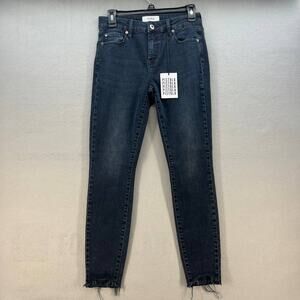 Miss Me Women’s Denim Jeans. Tagged size 29 (8). Blue in color, dark denim wash. Embroidered back pockets with a sequin and embroidered floral feathery waterfall. These Miss Me women's jeans feature a five pocket design, embellished pockets, a skinny leg and a mid rise fit. Style number E3180ES3S. In excellent preowned condition with minimal signs of wear - EUC.