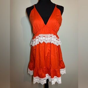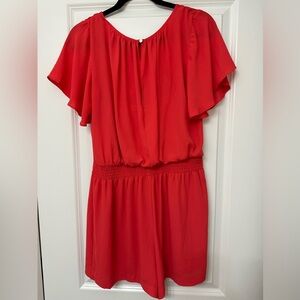 🏷️✂️🔥 White House Black Market romper orange coral color flutter sleeve Sz 8 #16