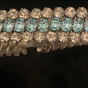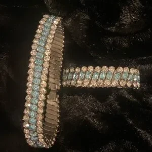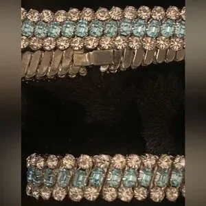 Vintage Light Blue Rhinestone Choker Necklace & Bracelet Set look @ the video