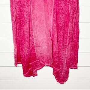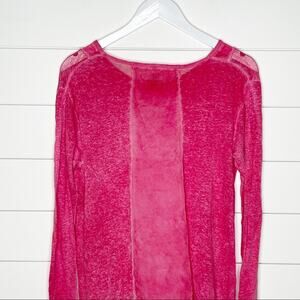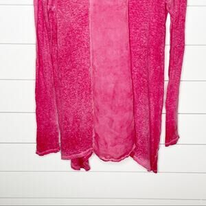 Size: S Color: Hot pink Design: Linen tunic, long sleeves, round neckline, handkerchief hemline, smooth center panel, slub knit body, semi sheer Materials: 100% linen Condition: Gently pre-owned with no flaws Measurements (laying flat) Chest: 23.5 in Length: 34 in