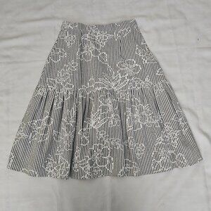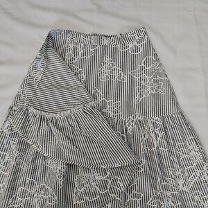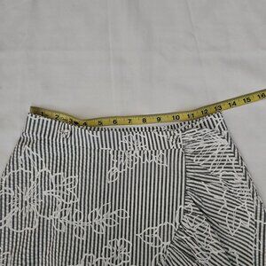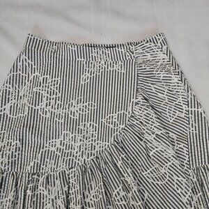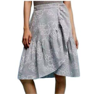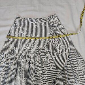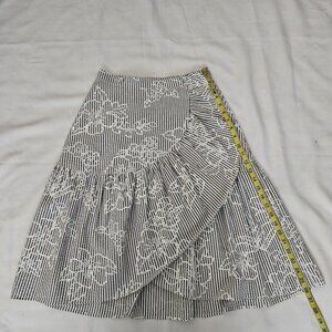 Eva Franco By Anthropologie Gray/White Striped Floral Ruffle Wrap Style Skirt Women's Size 4