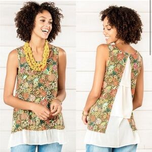 Ivory ruffle at bottom and semi-sheer ruffles in back. 2017: “Open Orchard” The Adventure Begins. Great used/preloved condition. From a smoke free, pet (dog and cat) friendly home.