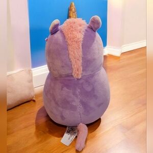 Squishmallow Hug Me Tara Unicorn 10" Plush Purple Holding Heart Kellytoys used in good condition from a smoke and pet friendly home. Does not have a paper tag.