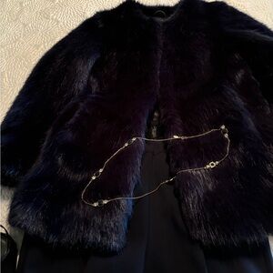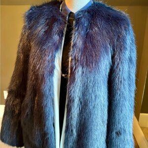 Elegant Faux Fur Coat by ANN TAYLOR in beautiful Navy NWT